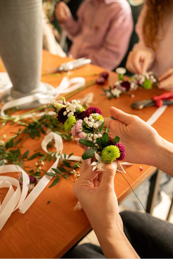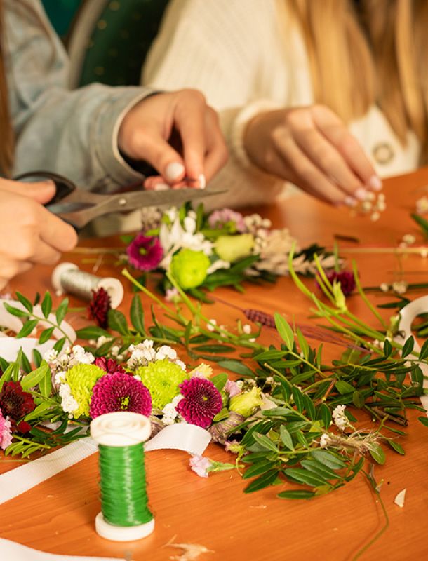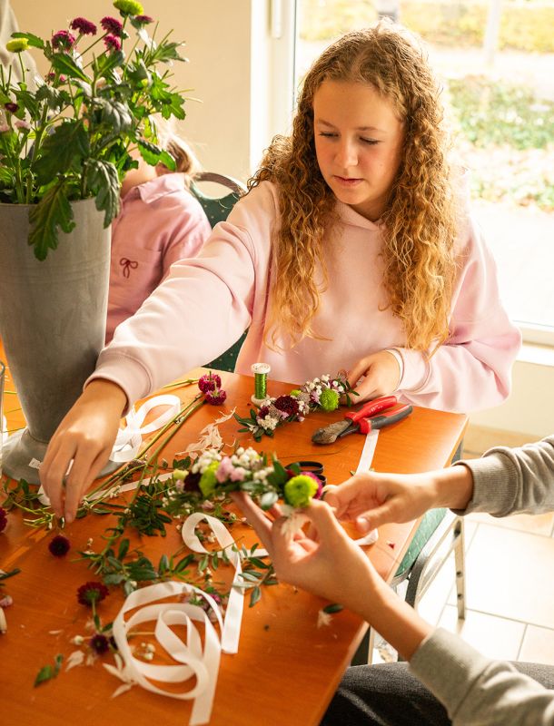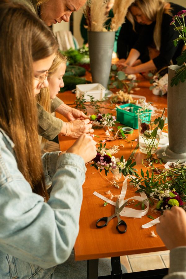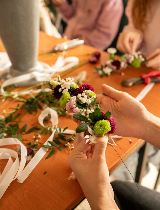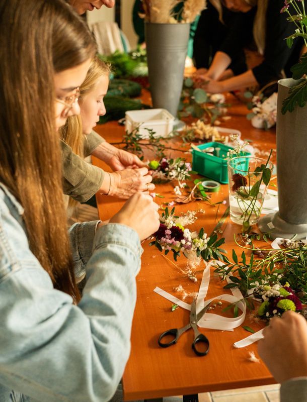 Ab einer Gruppe von mindestens sechs Personen könnt ihr euer Wunschthema frei wählen – ob floristisch, saisonal oder dekorativ. Wir stimmen gemeinsam ab, was euch am meisten Spaß macht und was ihr gestalten möchtet.