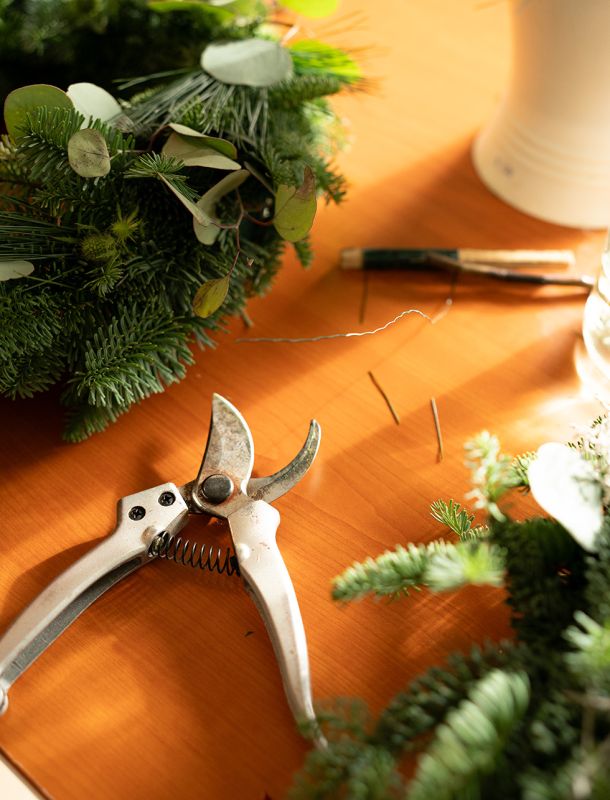 In diesem Workshop gestaltest du einen großen Weidenkranz (ca. 30 cm), der sowohl als Türkranz als auch als Tischkranz verwendet werden kann – zum Beispiel mit einem Windlicht in der Mitte.